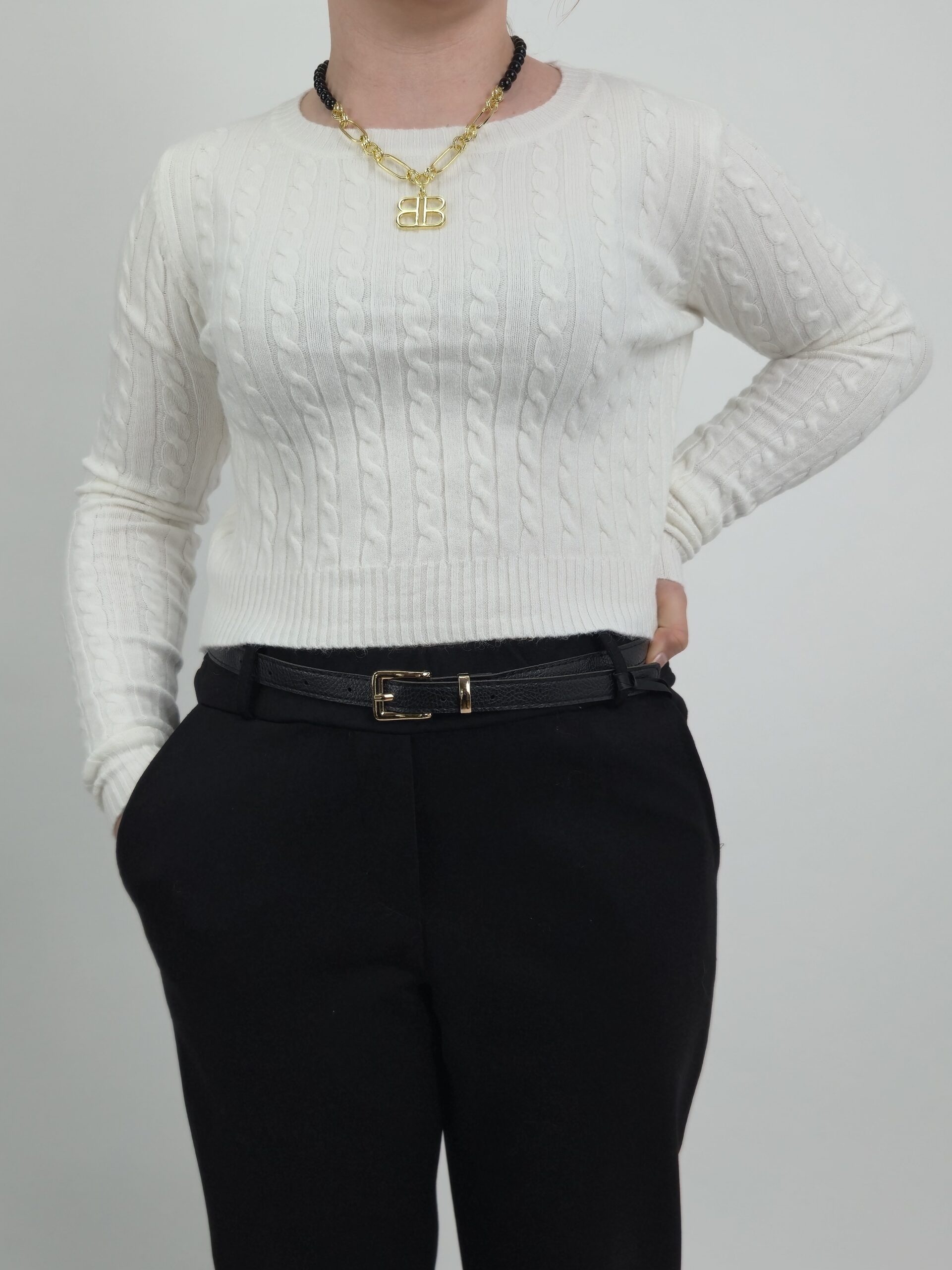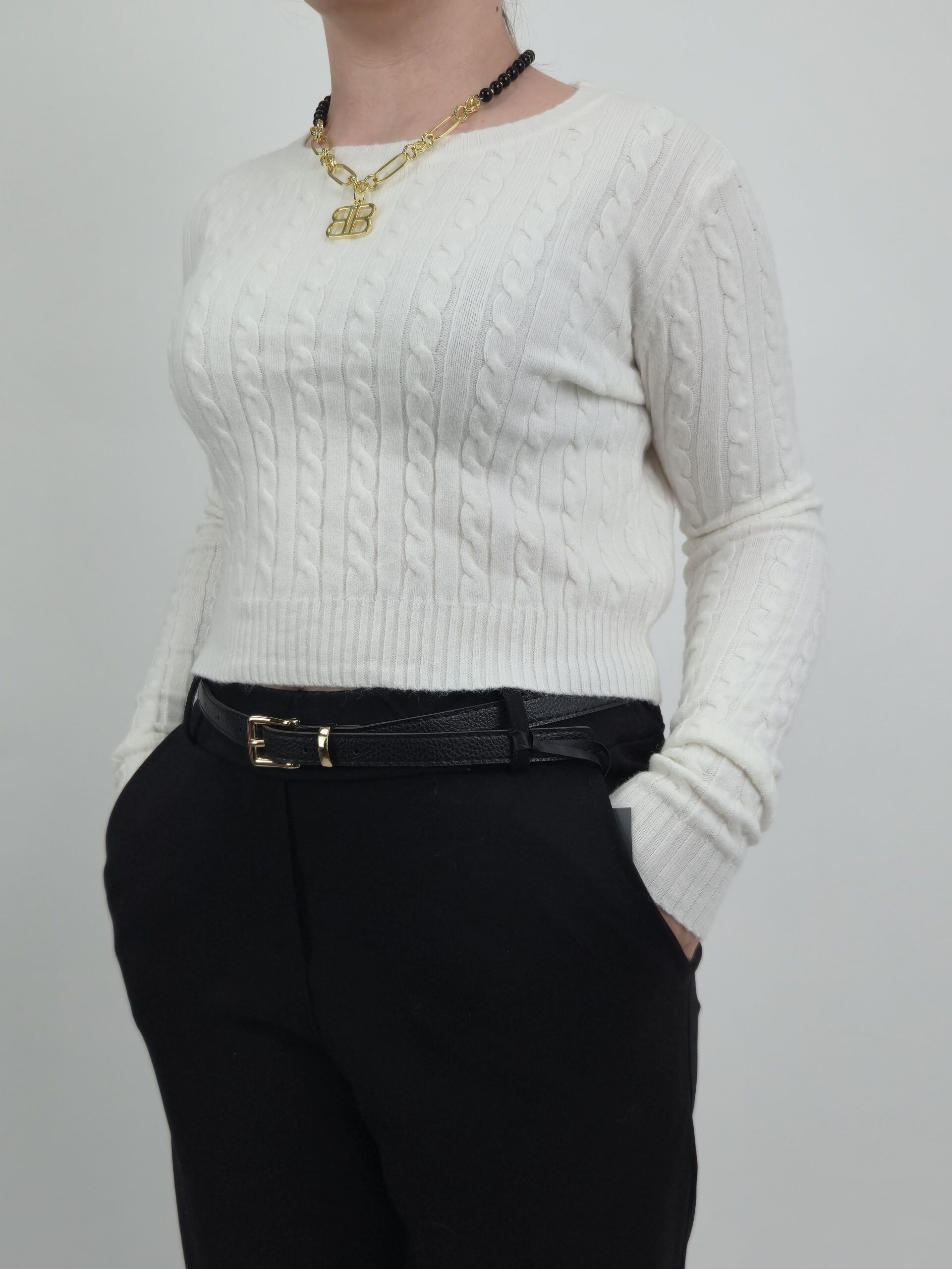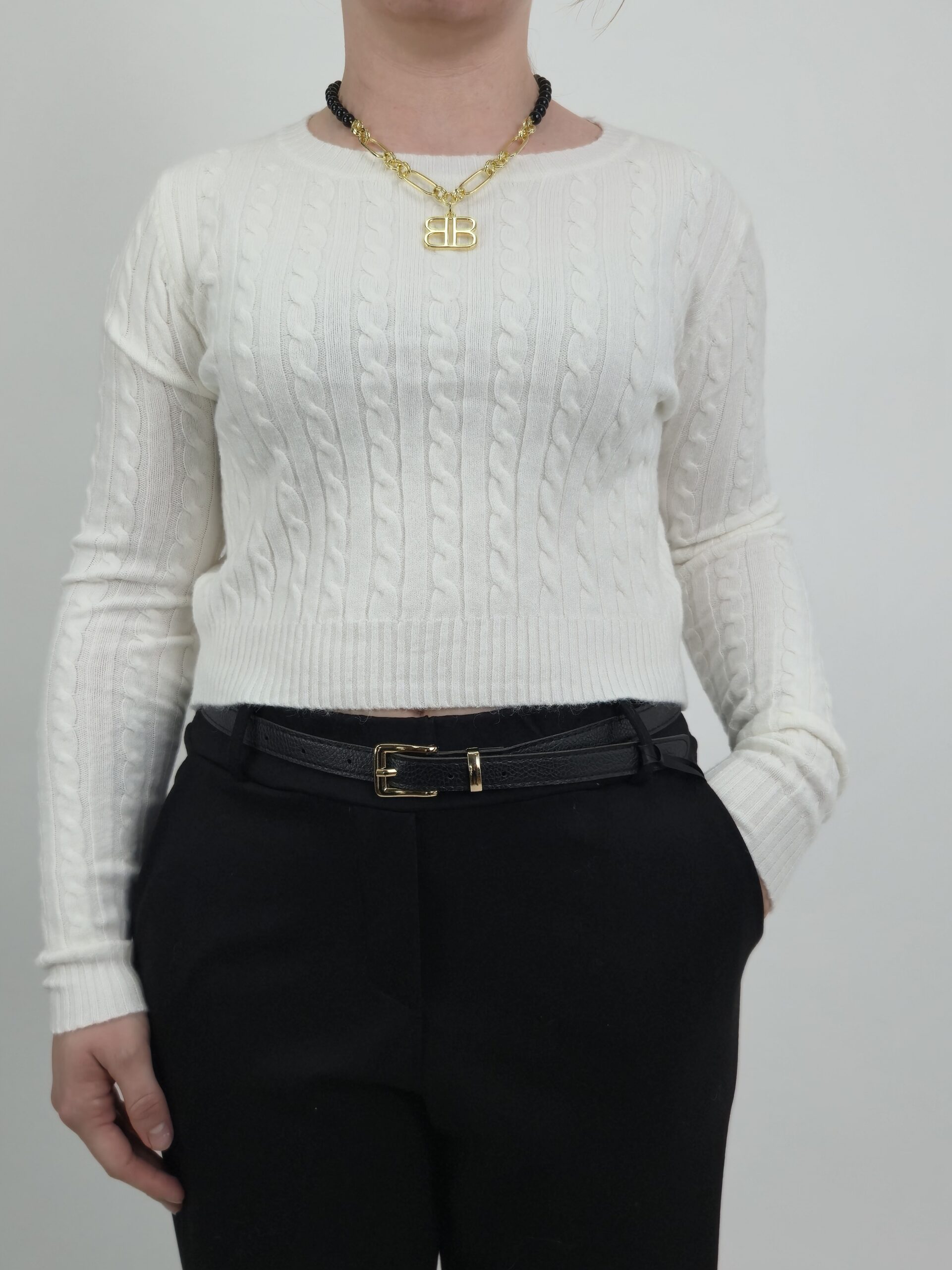 Krótki Dzianinowy Sweter z Warkoczowym Splotem