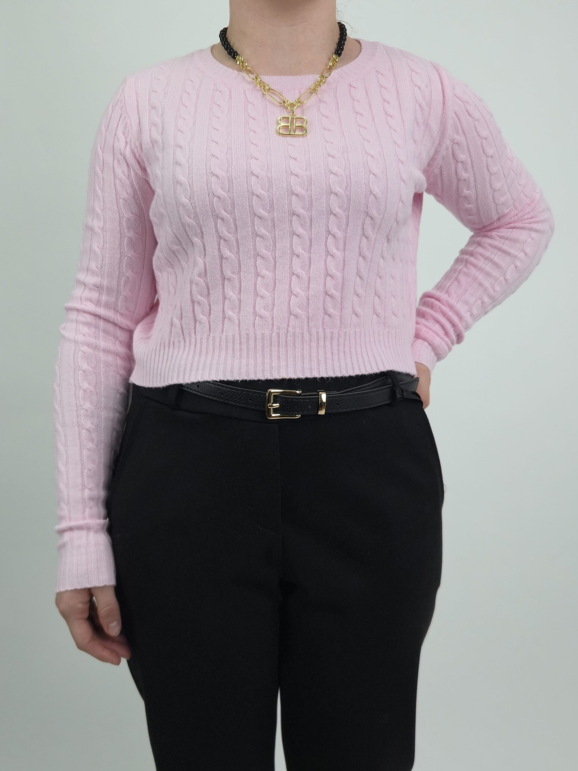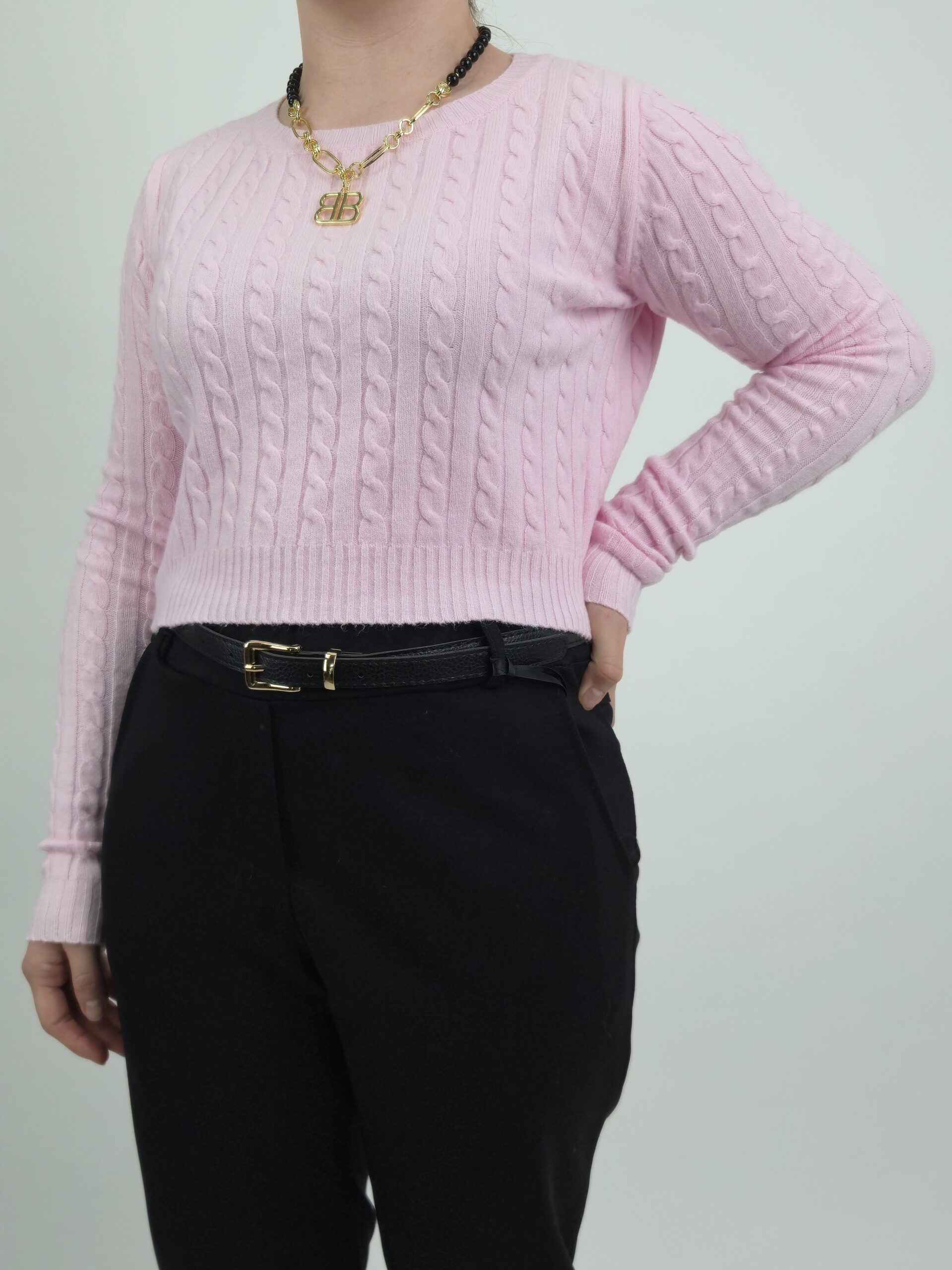 Przedstawiamy Państwu niezwykle stylową i świeżą propozycję na nadchodzący sezon – krótki sweterek w kolorze pastelowo różowym. Ten model to harmonijne połączenie klasycznego rzemiosła z nowoczesnym, skróconym fasonem, który idealnie wpisuje się w najnowsze trendy mody wiosennej.