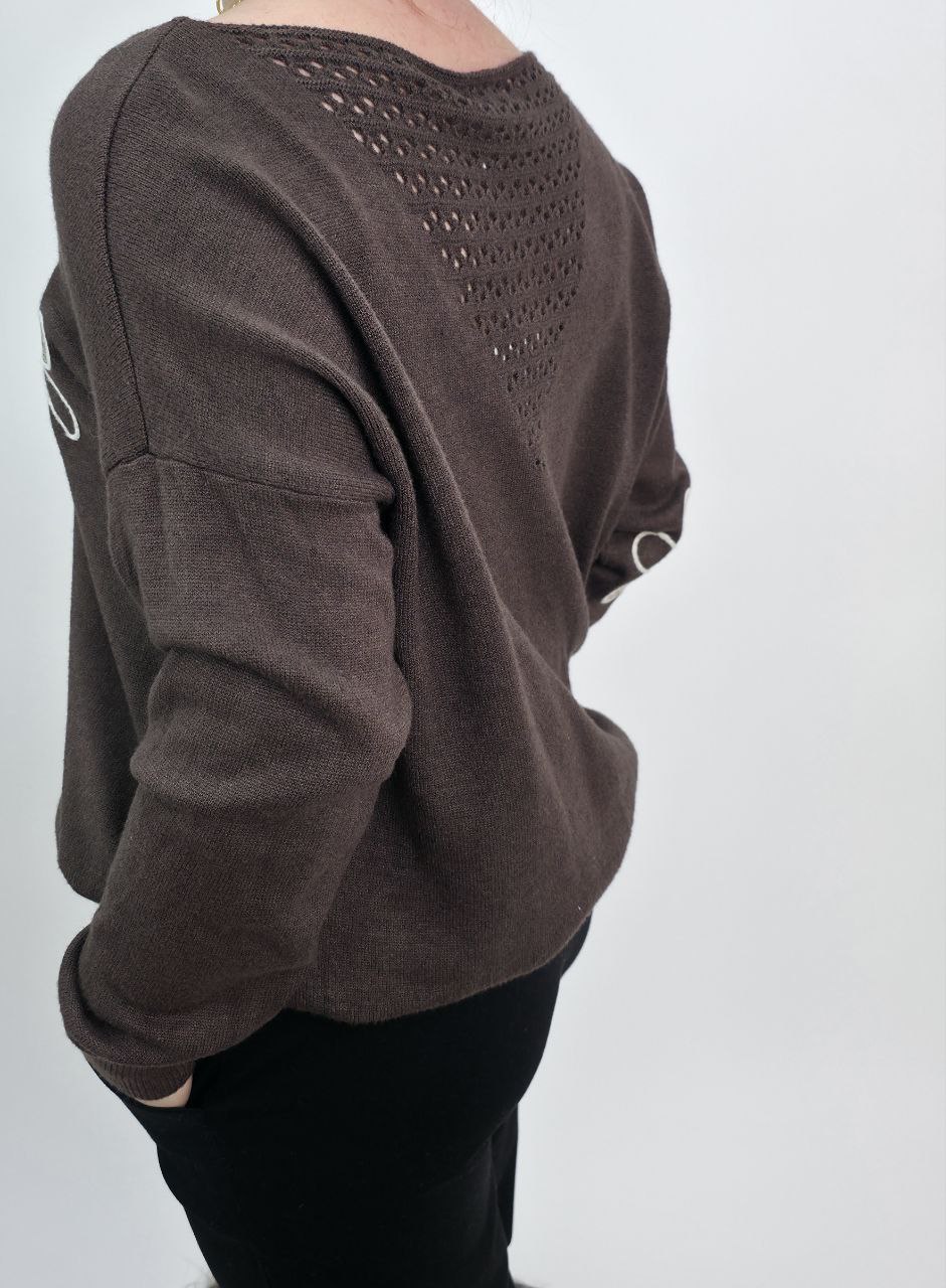 Przedstawiamy Państwu subtelną i niezwykle kobiecą propozycję na nadchodzący sezon. Ten czekoladowy sweter to harmonijne połączenie delikatności z artystycznym detalem. Dzięki wysokiej zawartości wiskozy, model ten staje się drugą skórą, oferując luksusowy komfort i nienaganną estetykę każdego dnia.