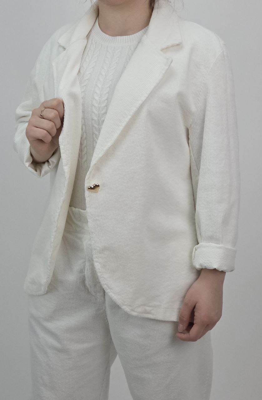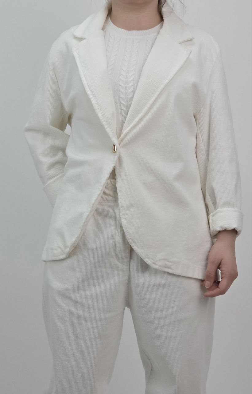 Sztruksowy Żakiet z guzikiem w kształcie serduszka – Śmietanka