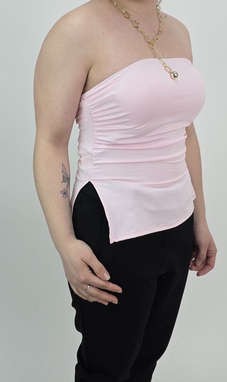 Elastyczny Top bez Ramiączek z Wkładkami – Jasny Róż