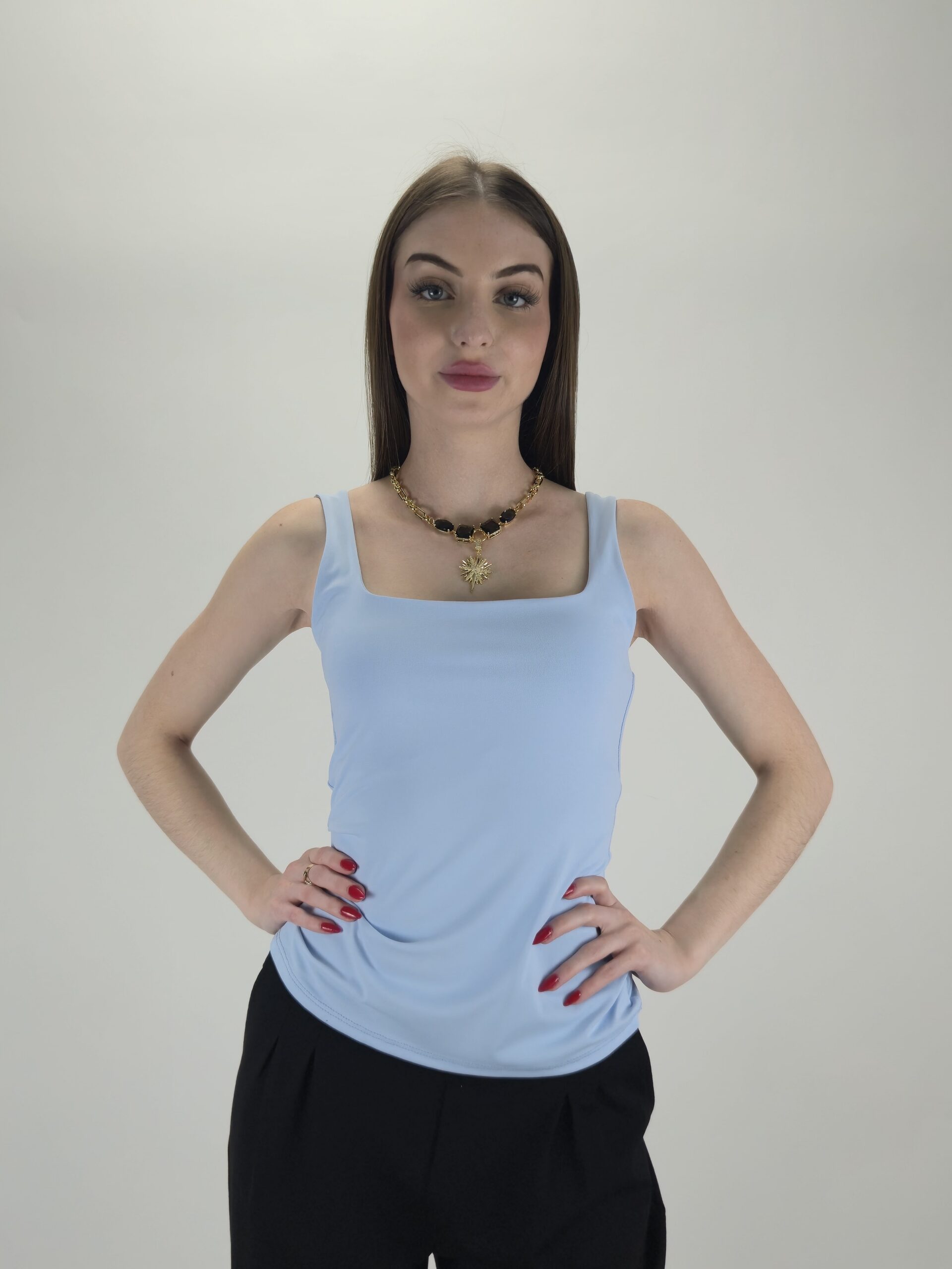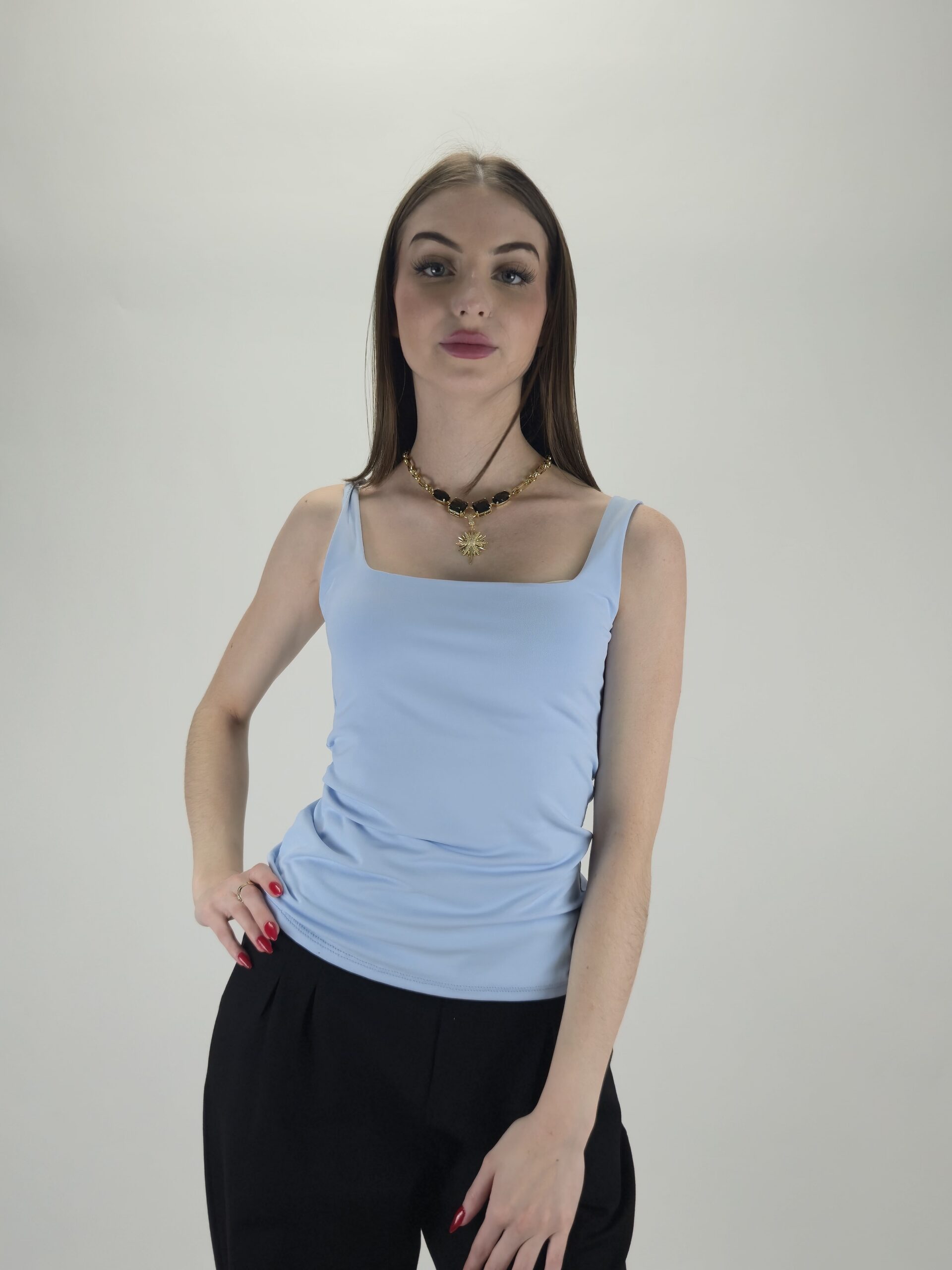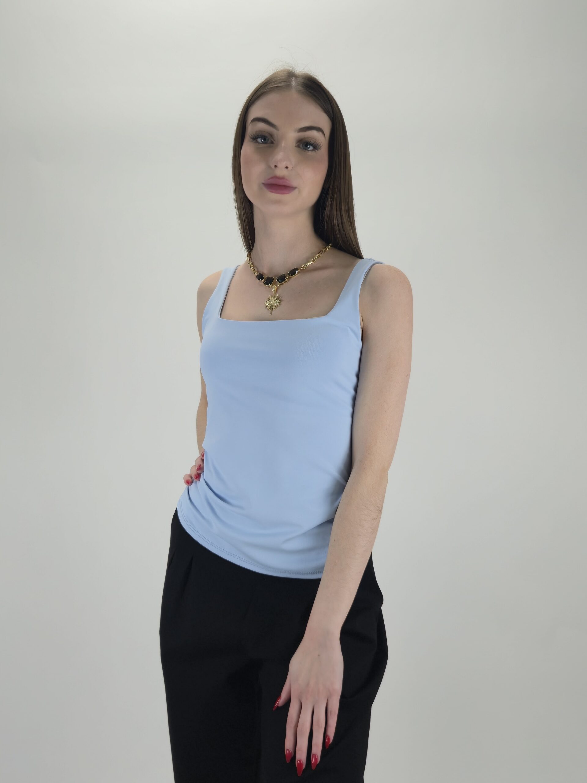 Klasyczny Top Elastyczny z Podwójną Warstwą – Błękitny