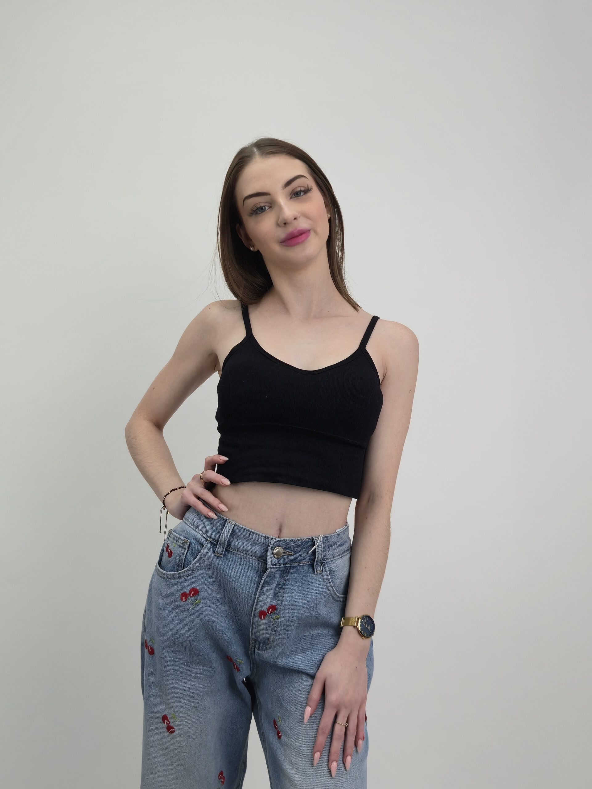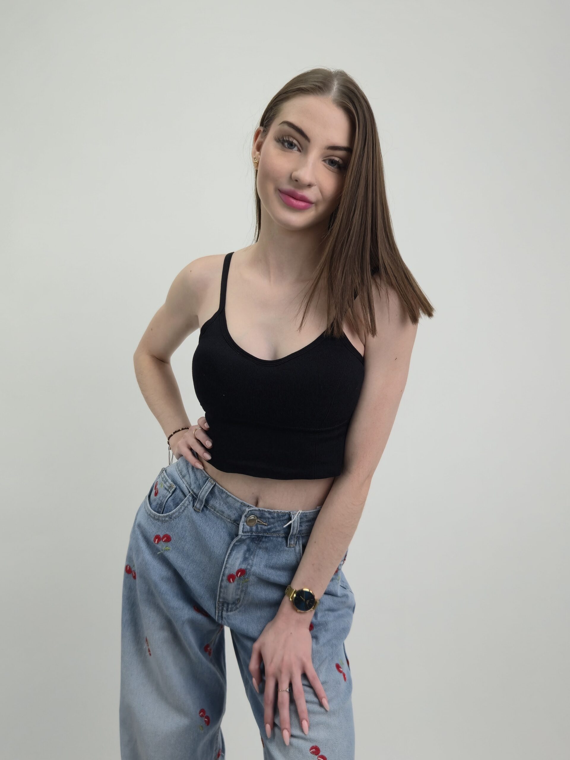 Dodatkowo cienkie ramiączka nadają lekkości, dlatego top doskonale sprawdzi się jako element bazowy lub samodzielna część stylizacji.