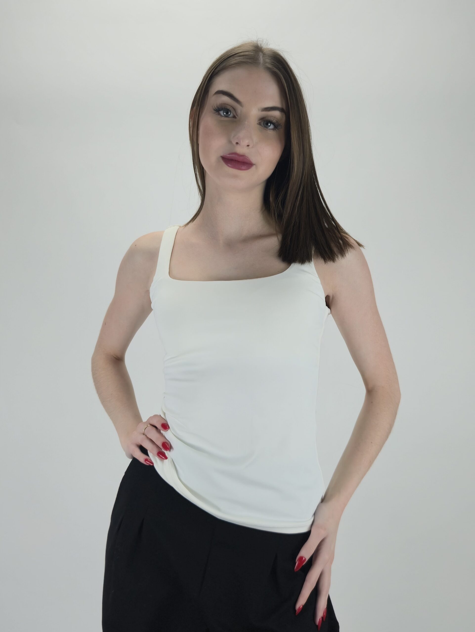 Klasyczny Top Elastyczny z Podwójną Warstwą – Śmietankowy
