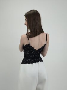 Dodatkowo cienkie ramiączka nadają subtelności i sprawiają, że top doskonale układa się na ciele. W efekcie możesz stworzyć zarówno elegancką, jak i codzienną stylizację.