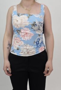 Top damski w kwiaty to ponadczasowy element garderoby, który nigdy nie wychodzi z mody. Ponadto kwiatowy print dodaje lekkości i sprawia, że stylizacja wygląda świeżo oraz kobieco.