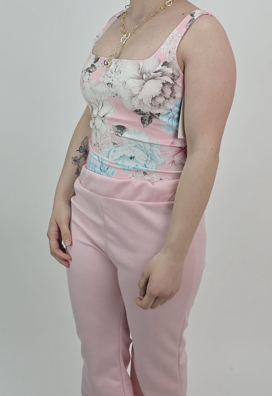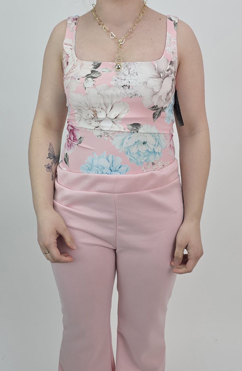 Modelujący top damski w kwiaty różowy