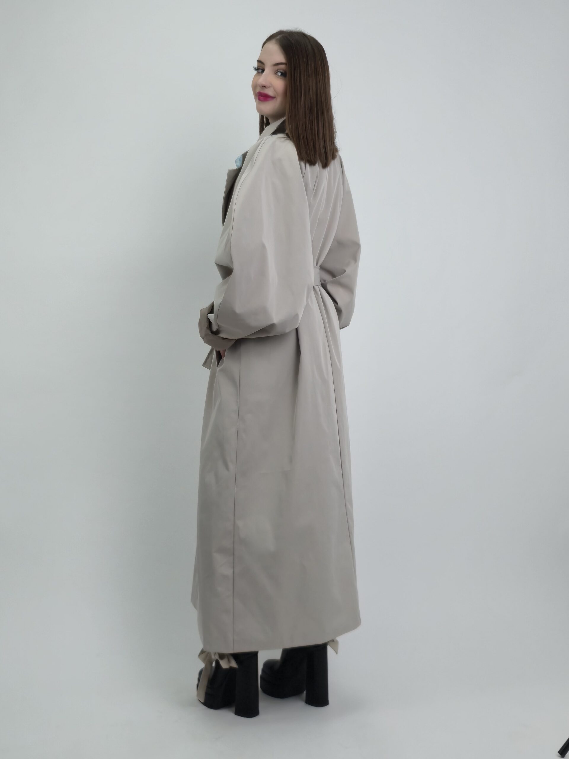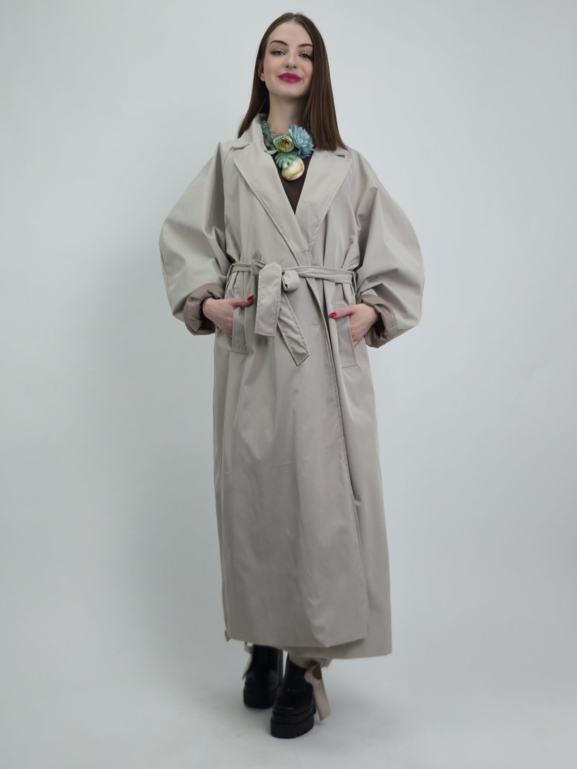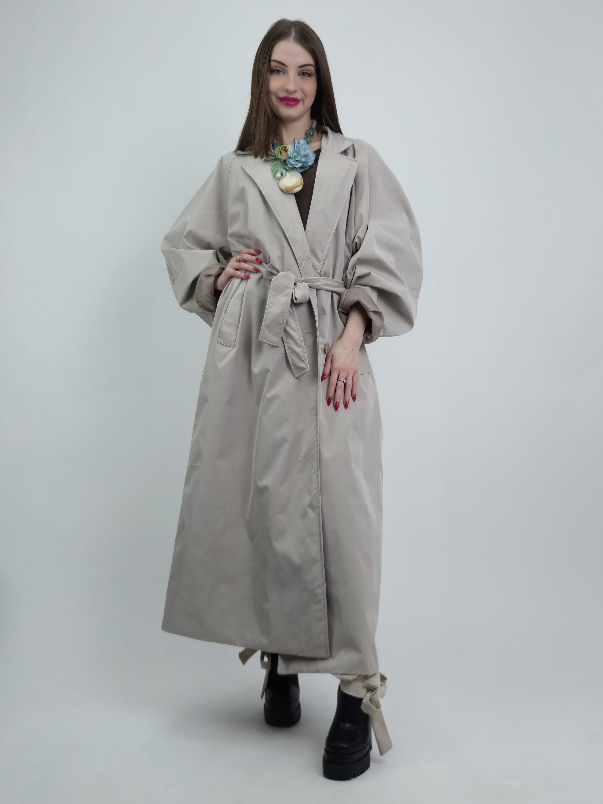 Przedstawiamy Państwu kwintesencję wiosennego stylu – długi trencz w odcieniu jasno szarym. To ponadczasowy element garderoby, który łączy w sobie klasyczny szyk z nowoczesnymi detalami, idealnie dopełniając zarówno codzienne, jak i wizytowe stylizacje.