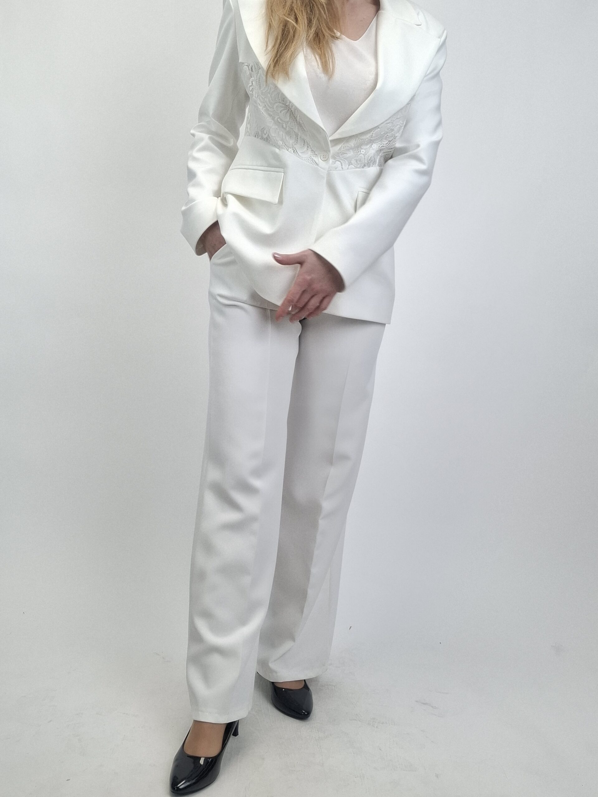 Przedstawiamy Państwu kwintesencję wieczorowej elegancji. Ten biały żakiet to produkt polskiej marki odzieżowej premium, który łączy klasyczne krawiectwo z niezwykle kobiecym, zmysłowym detalem. Idealny wybór na uroczyste kolacje, gale oraz wszelkie okazje wymagające nienagannej i wyrafinowanej prezencji.